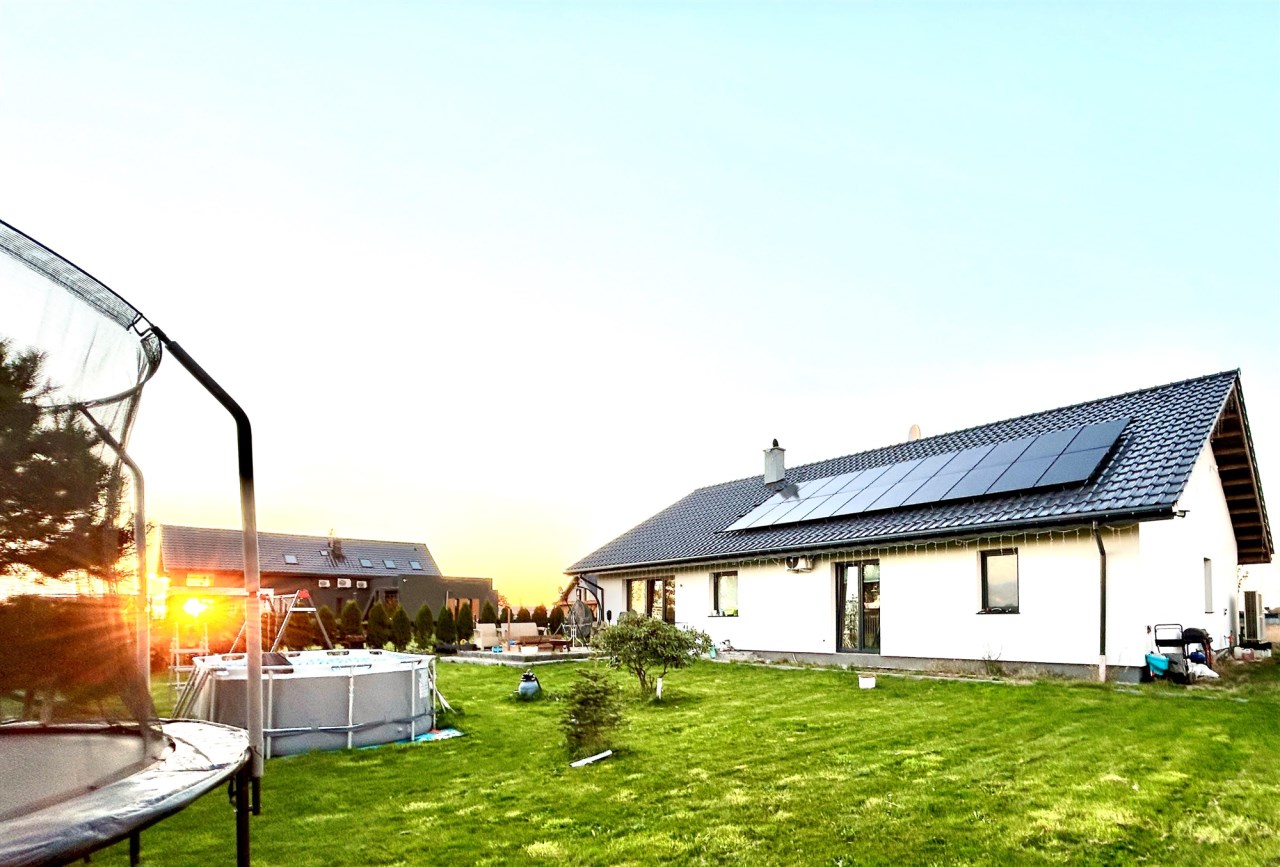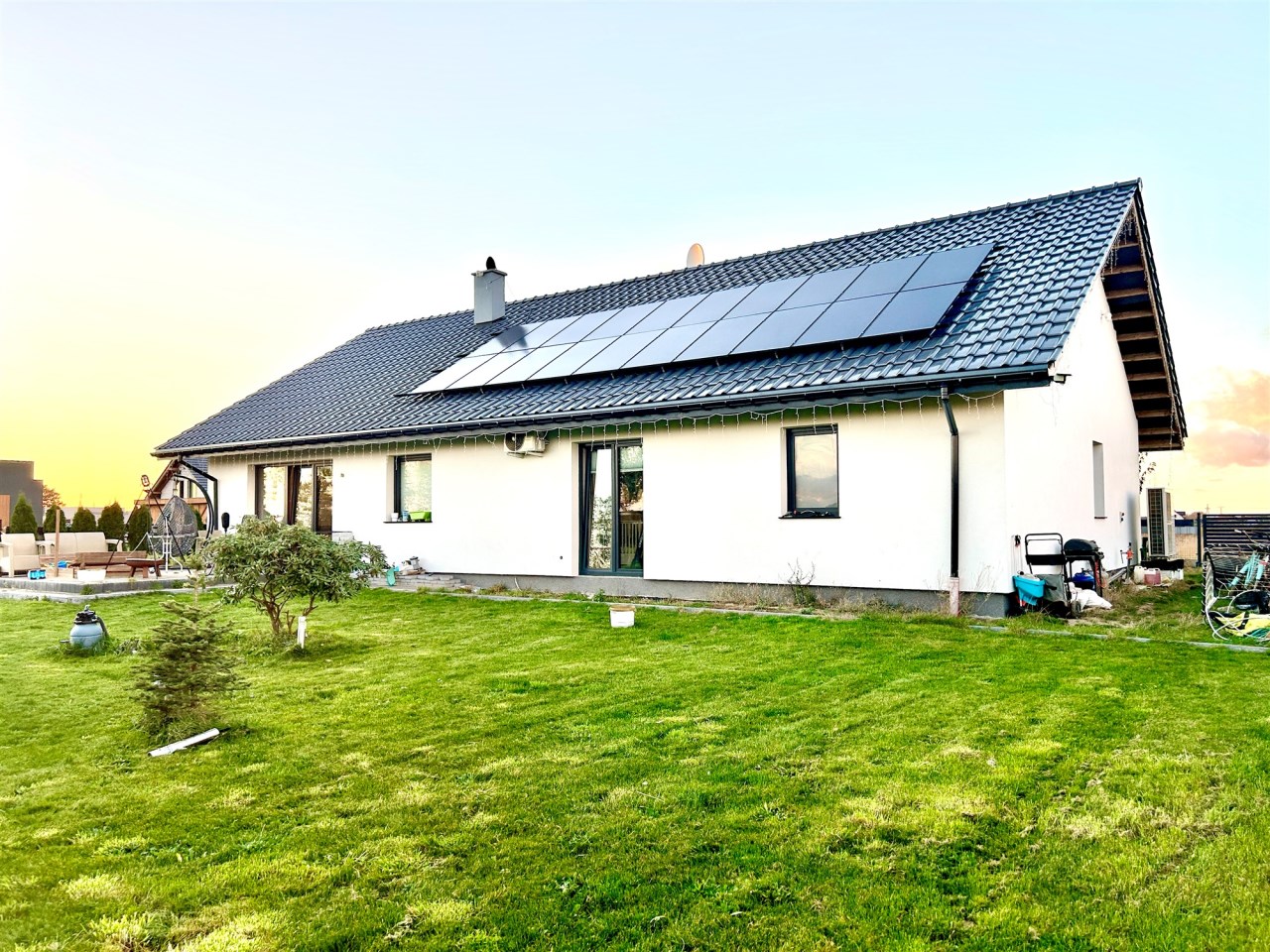 Dom wybudowany w nowej technologii, ogrzewanie podłogowe, pompa ciepła, kominek grawitacyjny, fotowoltaika (umowa na starych zasadach prosument ), klimatyzacja z zamontowanymi dwoma jednostkami w salonie i głównej sypialni, odkurzacz centralny.