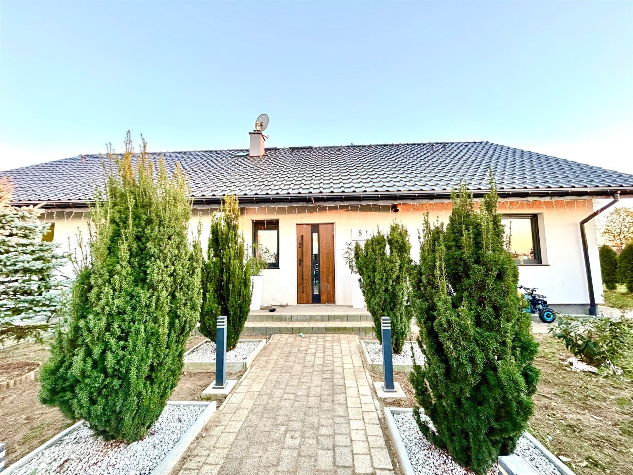 Dom wolnostojący, parterowy o powierzchni użytkowej 139 m2, posadowiony na działce 1053m2.