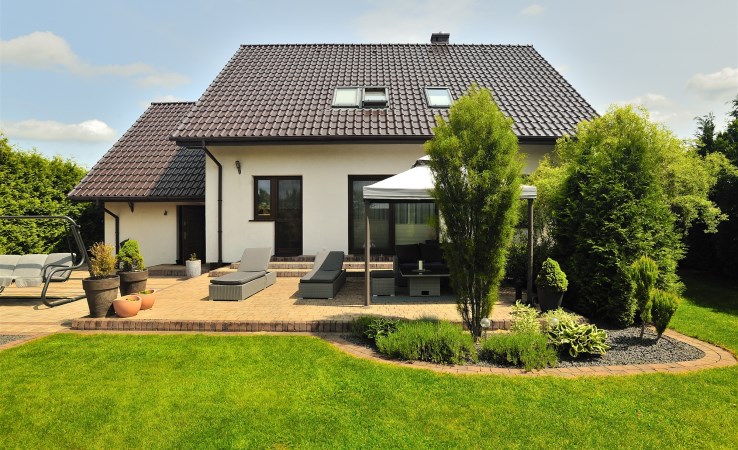 Posesja jest w pełni ogrodzona, z elektryczną bramą, a podwórko wyłożone kostką brukową.