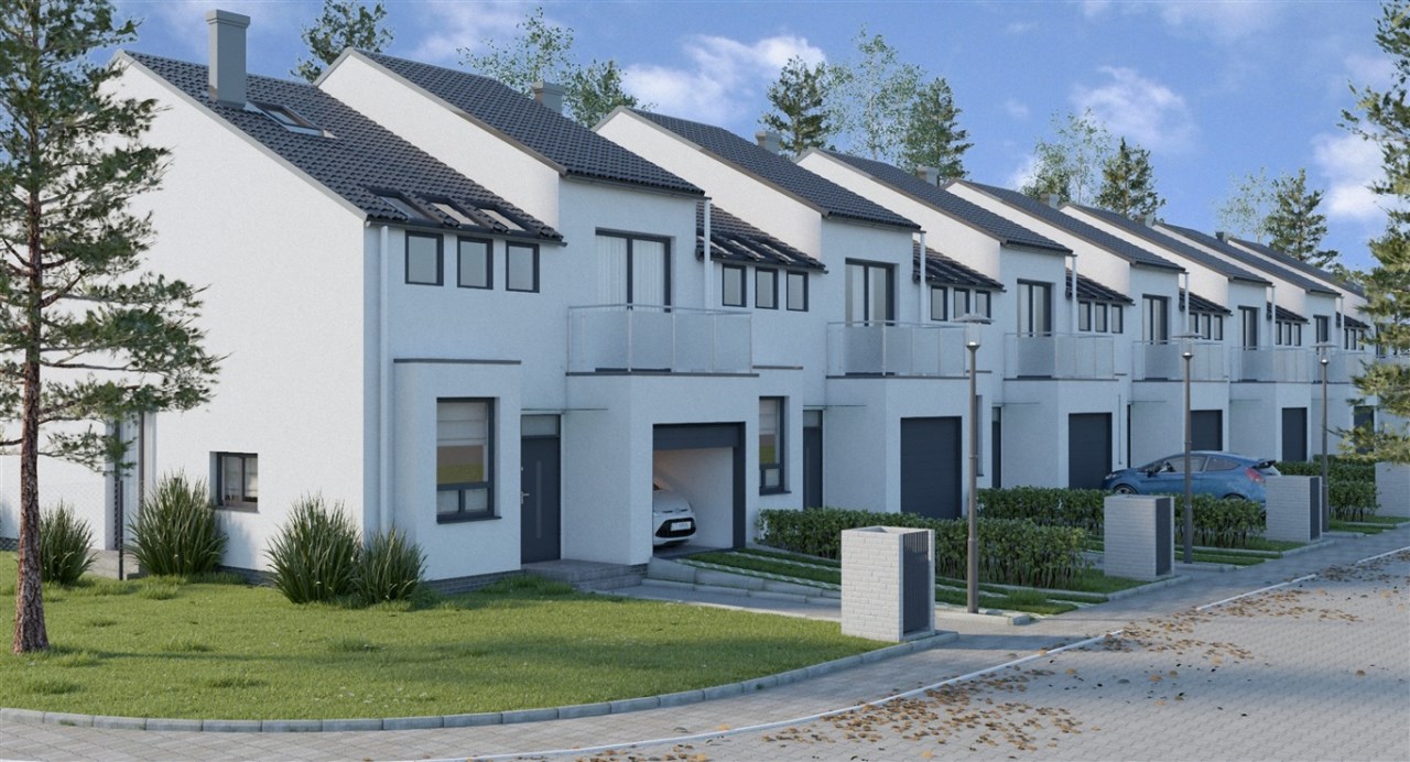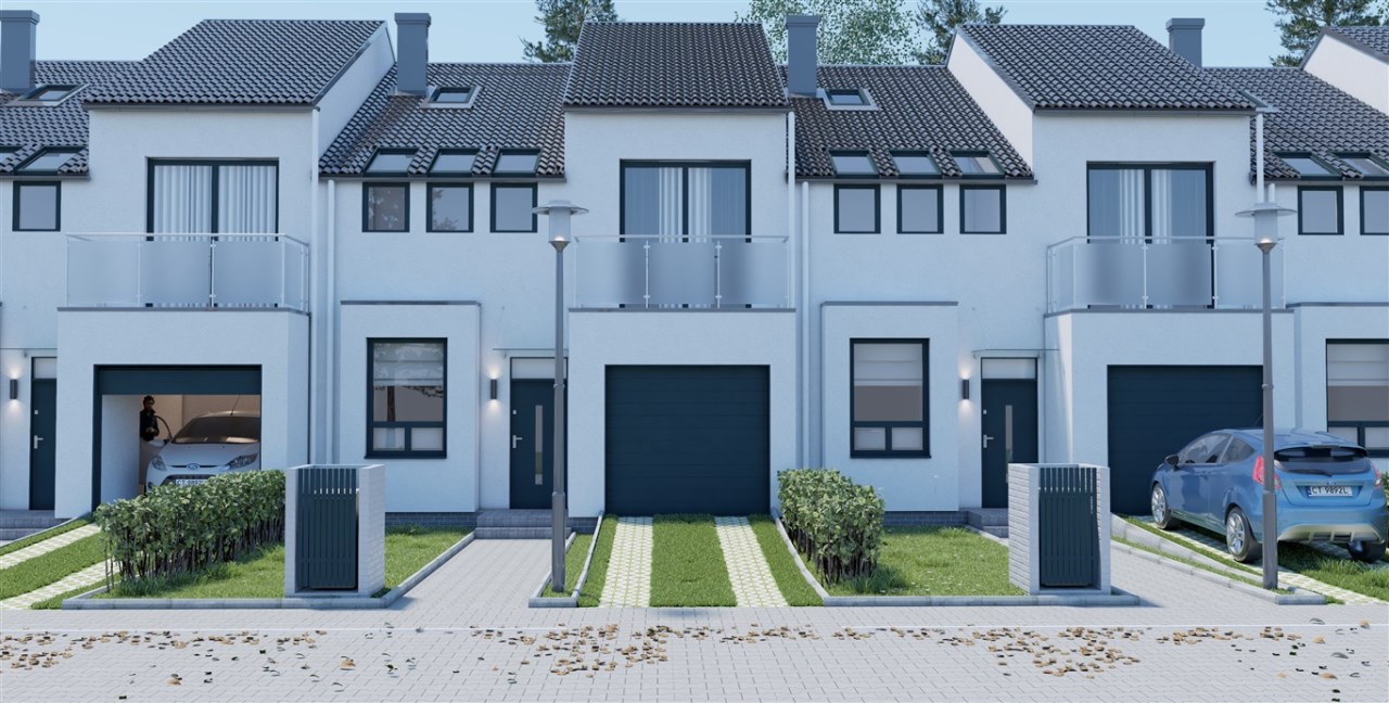 Każdy dom posiada garaż oraz dodatkowe miejsce postojowe. Działki o powierzchni około 179 m² z ogrodem od strony słonecznej zapewniają doskonałe warunki do relaksu na świeżym powietrzu.