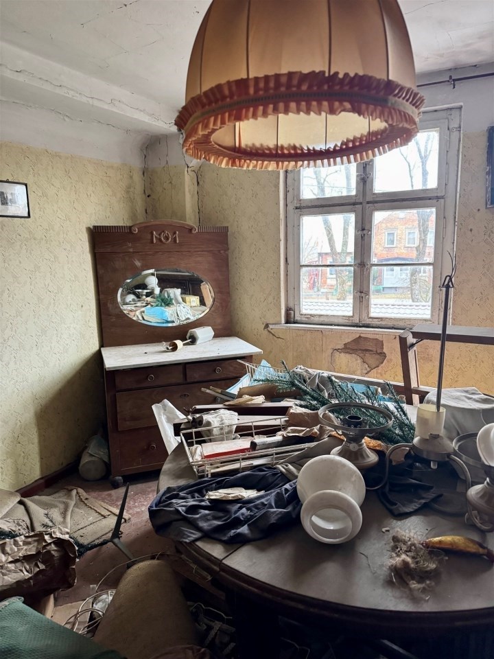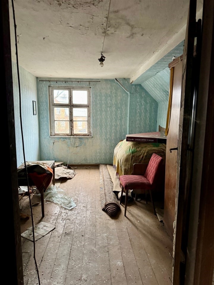 Jedno z mieszkań ma wejście od ulicy gdzie znajdują się dwa duże pokoje oraz kuchnia wraz z korytarzem. Drugie wejście jest usytuowane od podwórka z trzema dużymi pokojami z korytarzem i kuchnią. W tym lokalu znajduje się wejście na strych gdzie oprócz przestronnego strychu są jeszcze dwa oddzielne pokoje.