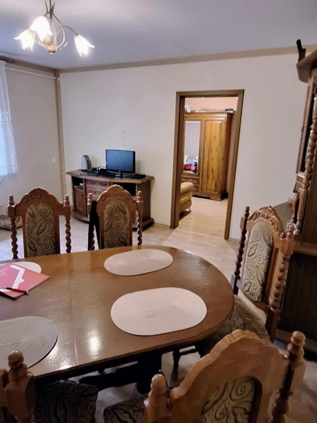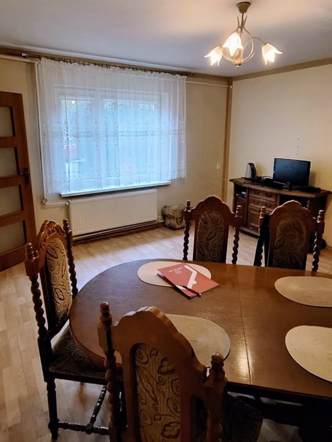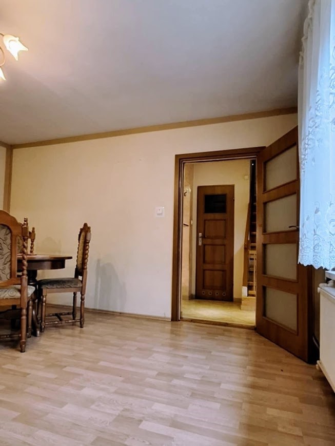 Na Sprzedaż Nieruchomość z niezależnym wejściem w budynku wielorodzinnym. Wspólnota. Parter - ganek, łazienka, kuchnia, dwa pokoje. Pietro - trzy pokoje. Strych. Pod kuchnią piwniczka z wejściem z zewnątrz budynku. Dodatkowo na działce budynek gospodarczy oraz garaż. Działka około 400m2. Całość po remoncie, z kompletnym wyposażeniem, gotowe do wprowadzenia się.