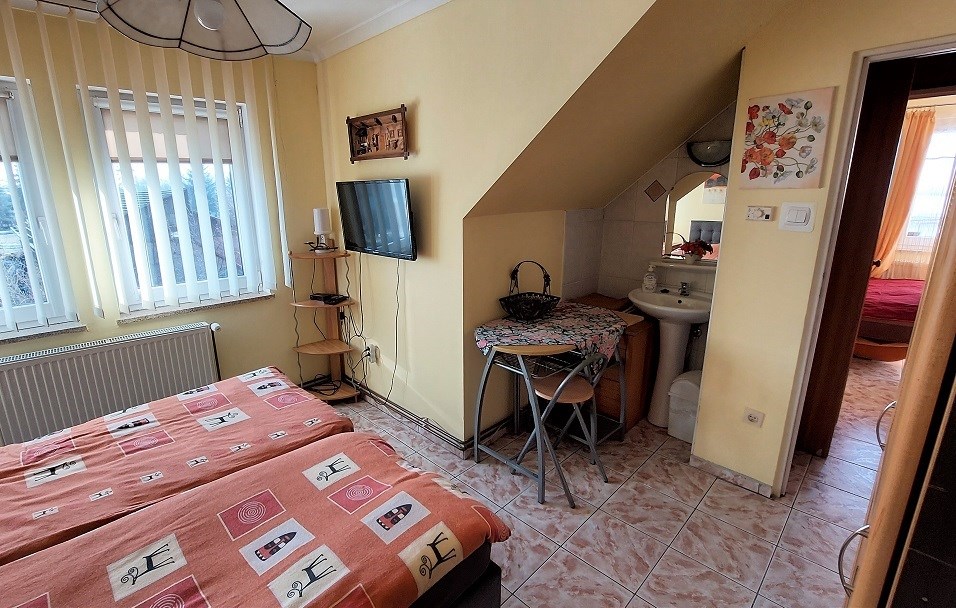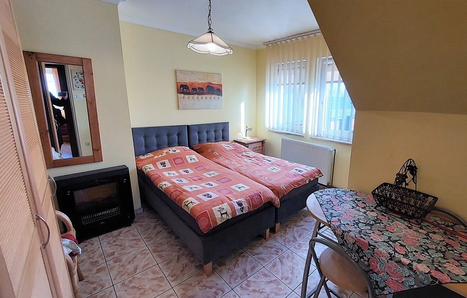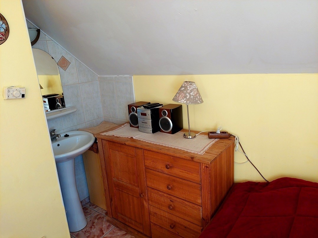 Układ na piętrze i poddaszu jest taki, że są po 2 apartamenty 2 pokojowe z łazienkami. Parter/przyziemie stanowi część jadalniano-świetlica a pozostałe pomieszczenia mogą stanowić dodatkową część mieszkalną z 2 pokojami, kuchnią i łazienką np dla zarządzających. Na tym poziomie z wejściem z zewnątrz jest pomieszczenie gospodarcze/kotłownia . Możliwość nocowania minimum 16 osób jednorazowo.