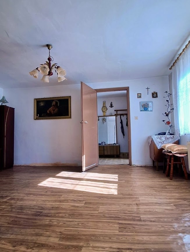 Na Sprzedaż Dom Bliźniak w spokojnej, cichej wiosce otoczonej polami i lasami. Dom o powierzchni ok. 70m2 , Dwa duże pokoje , duża kuchnia , duża łazienka , korytarz, przedsionek oraz duże poddasze. Dom bez barier architektonicznych - całość na parterze bez schodów. Dodatkowo budynki gospodarcze. Działka ok. 1650m2. Ogrzewanie piec kaflowy plus centralne na drewno.