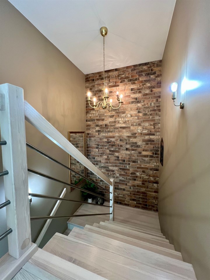 Na piętro prowadzą drewniane schody z jesionu barwionego.