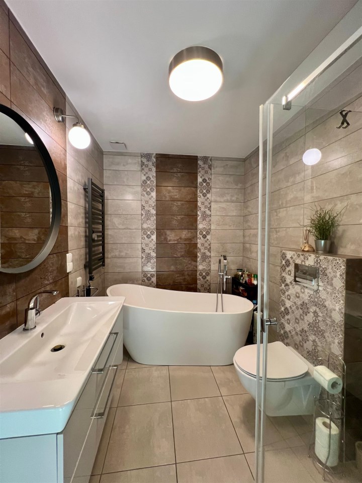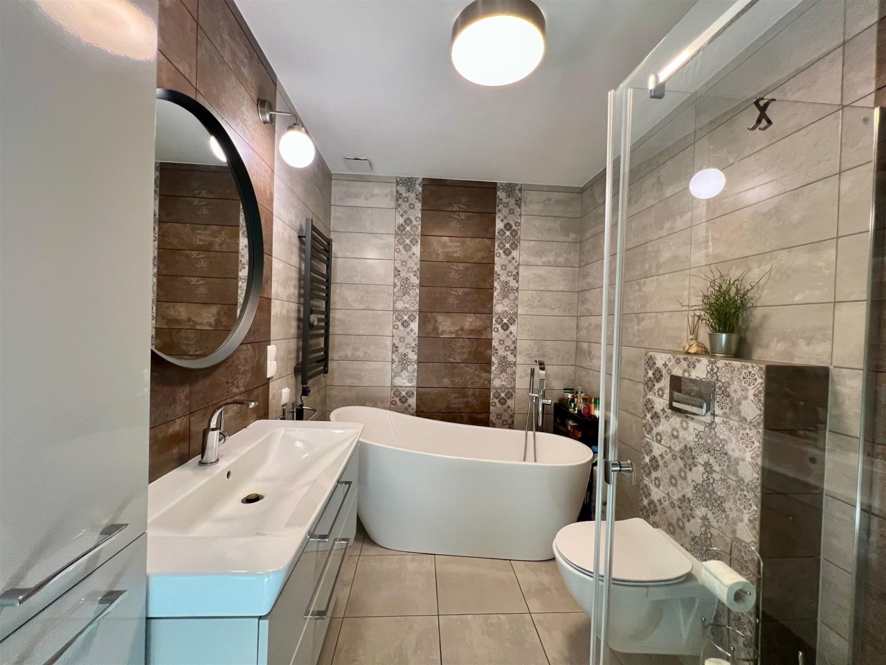 oraz łazienka z wanną wolnostojąca i prysznicem.