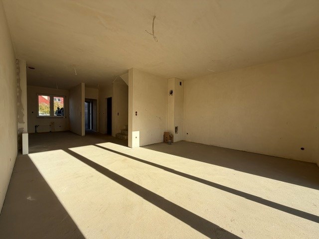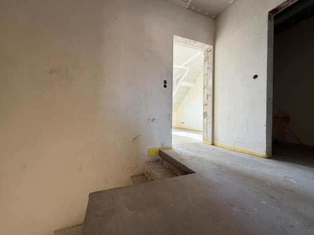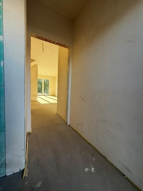 Wewnątrz tynki gipsowe, przygotowane do malowania.