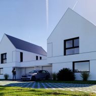 Domy zostały wyposażone w pompę ciepła i ogrzewanie podłogowe. Okna trzyszybowe.