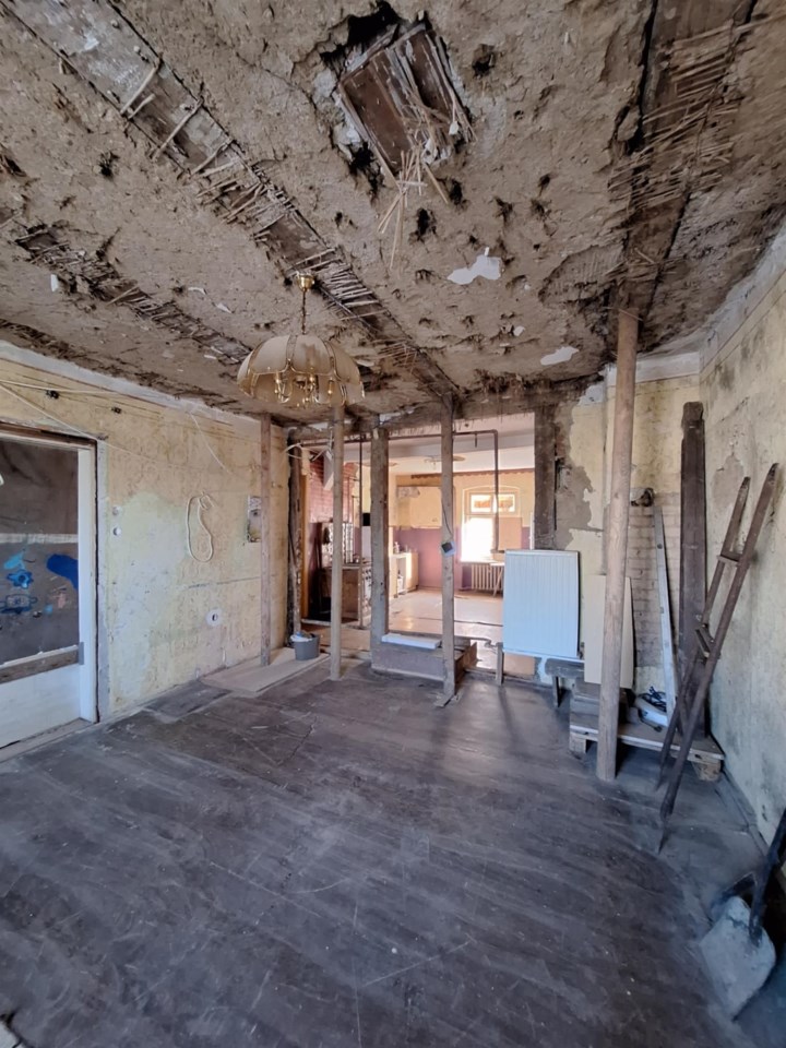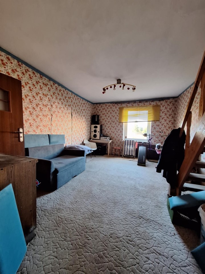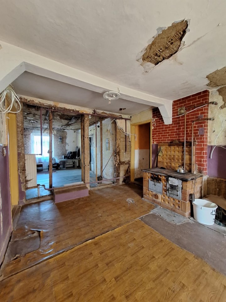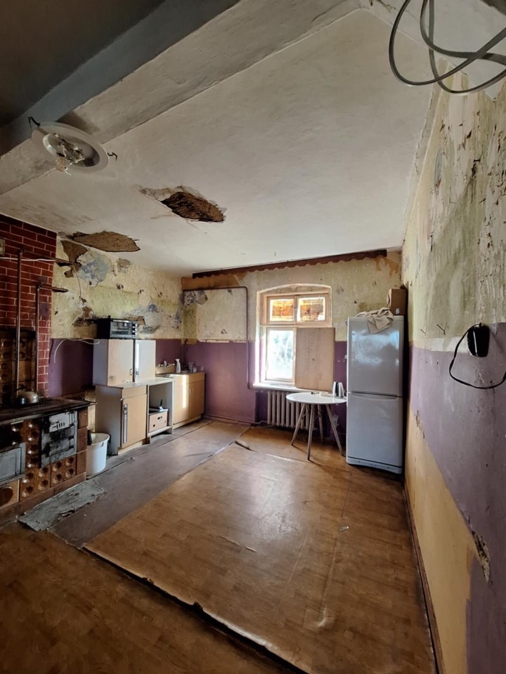 92 metry powierzchni w budynku z trzema mieszkaniami. Parter to Ganek , Łazienka, Pokój , Kuchnia ( w tej chwili rozebrana jedna ściana łącząca kuchnię z pokojem celem powiększenia salonu ). Piętro - duży pokój plus część strychu. Wejście niezależne, własne, z boku budynku. Tereny rolnicze, wiejskie.