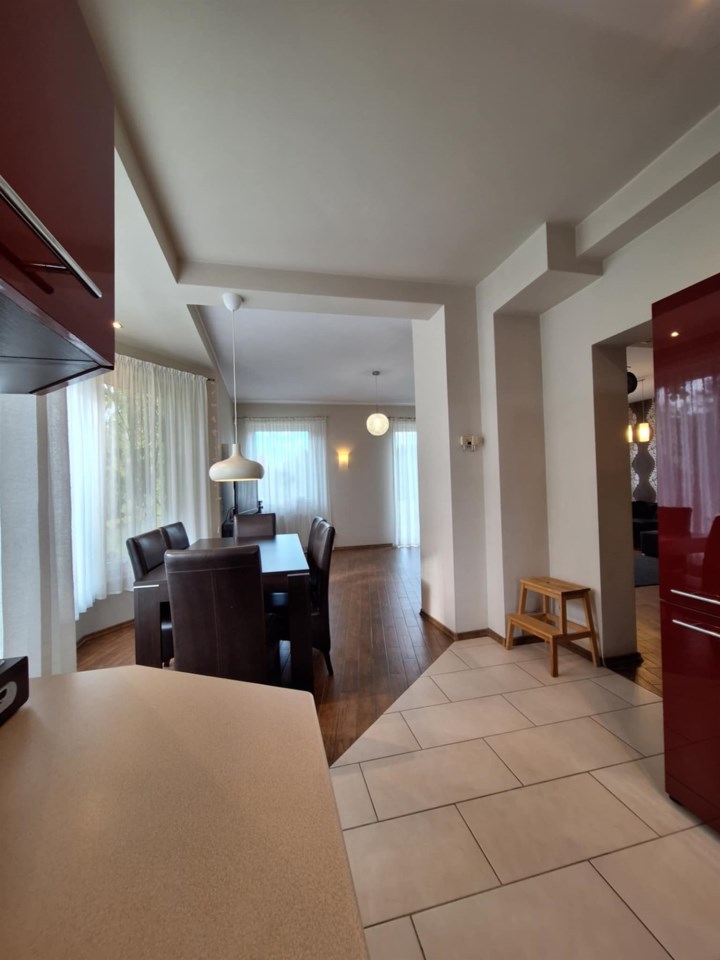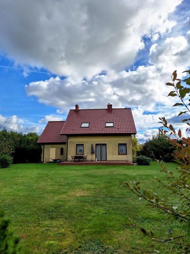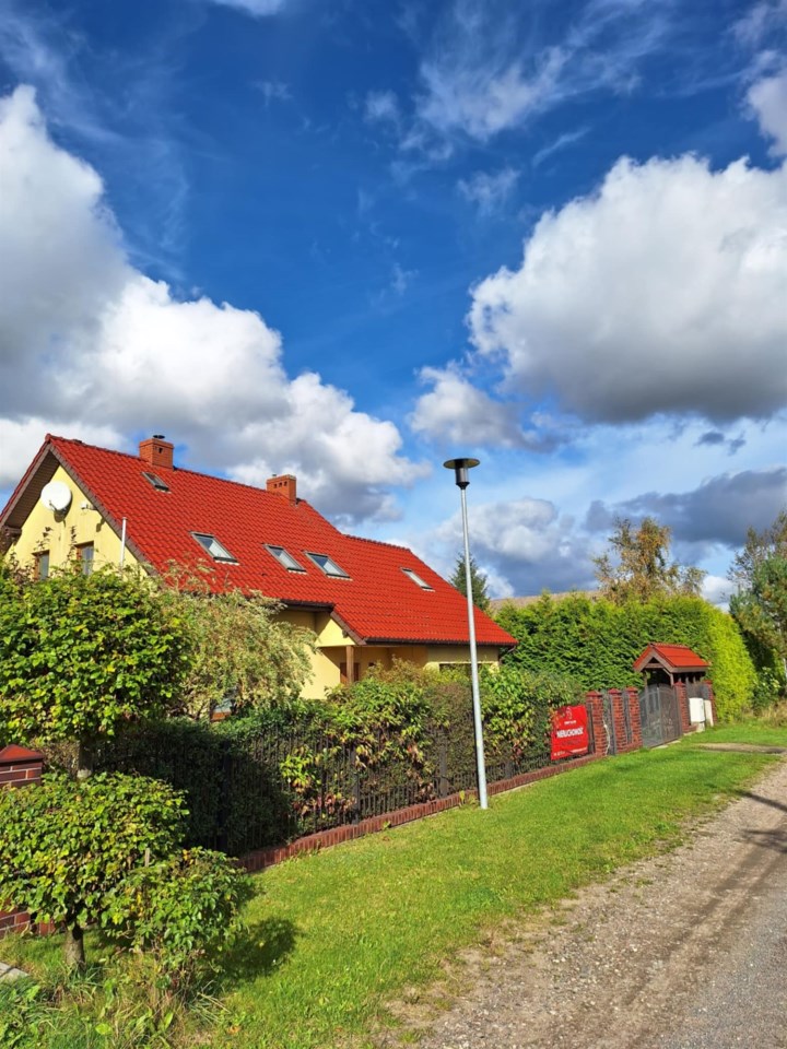 Dom wolnostojący ( około 145m2 ) zbudowany w 2006 roku oddany w 2007. Projekt domu: "gl-124-fistaszek" w projekcie zmiany - brak ściany w salonie oraz powiększenie garażu do 4m, garderoba w sypialni. Ściany zewnętrzne porotherm 24 +styropian. Prostokątna działka ( około 1000m2 ) z dużym potencjałem ok 30 m długości za domem. Dom funkcjonujący i bardzo funkcjonalny gotowy do zamieszkania, podzielony na strefy: dzienną (salon, wydzielona jadalnia i kuchnia oraz mała łazienka) oraz cześć dla domowników na poddaszu użytkowym (dwa pokoje, sypialnia z pokojem i garderobą oraz duża łazienka). Przestronny taras od strony zachodniej na całej szerokości domu (ok 32m2).
