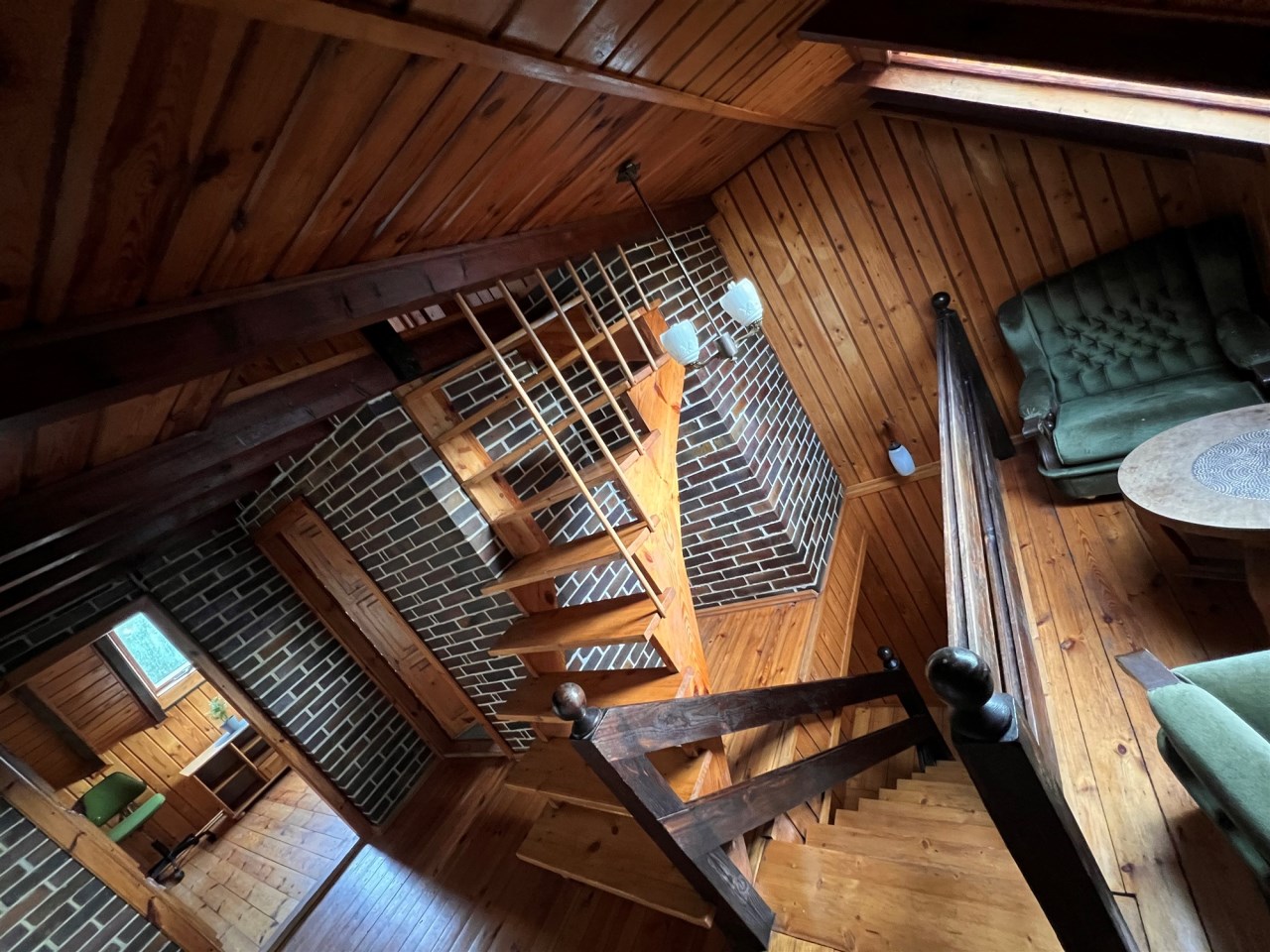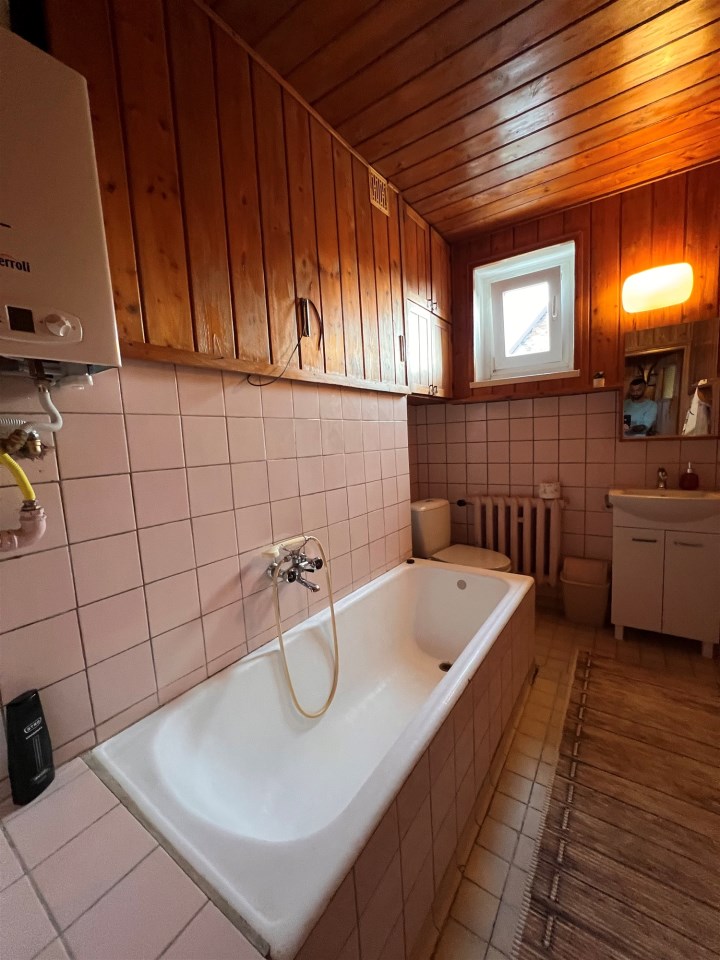 NA PIĘTRZE ……………… trzy duże pokoje, łazienka z WC, korytarz, balkon