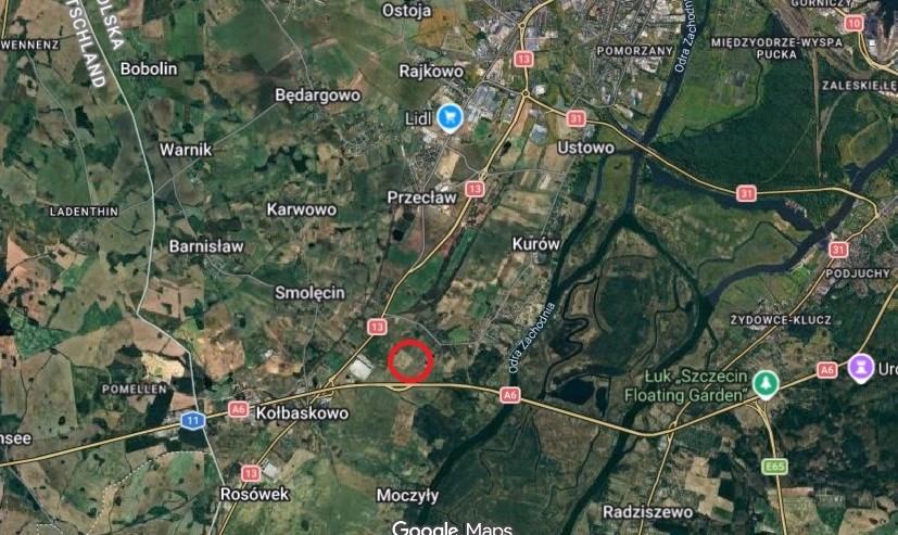 W pobliżu autostrada A6, węzeł budowany obwodnicy Szczecina, magazyn Amazon, Dolina Dolnej Odry gdzie będzie niedługa park narodowy.