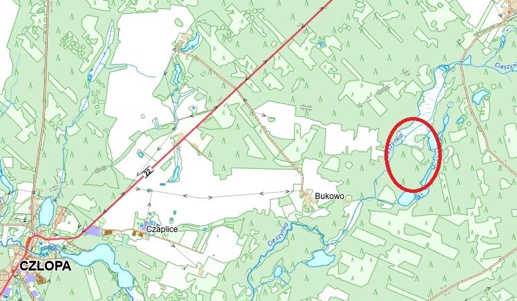 Najbliższe miasto Człopa około 6km w linii prostej.
