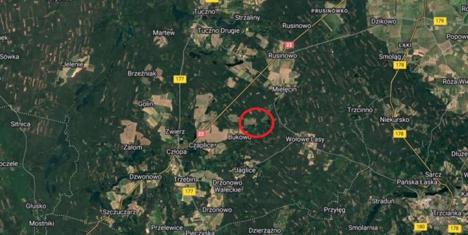 Dojazd drogą polną, uzbrojenia brak, odległość od zabudowań wsi Bukowo i Mielęcin około 2,5km.