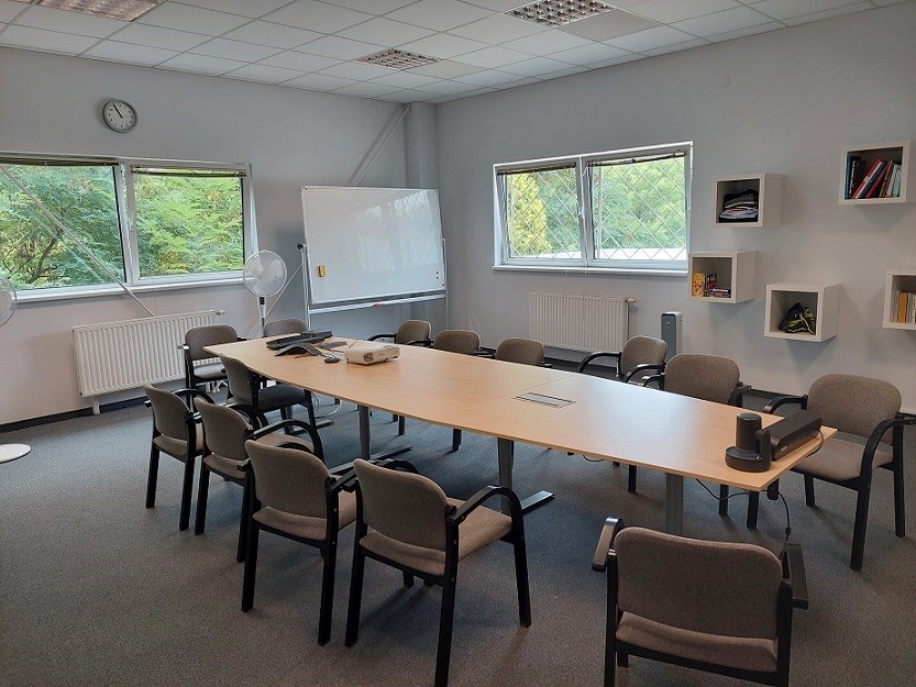 Obiekt usadowiony na pochyłości terenu co umożliwiło zrobienie dojazdu na poziomie O z powierzchni gruntu a na poziomie 1 poprzez rampy załadunkowe. W obiekcie na poziomie O są pomieszczenia magazynowo-warsztatowe o powierzchniach 422/245m2 oraz pomieszczenia socjalne, biurowe i techniczne (serwerownia) w jednej części. W drugiej części magazyny 944/895/323/313 w tym jeden magazyn chłodni. Wysokość głównych części hali magazynowej do konstrukcji dachu wynosi 6m. Na tym poziomie i w tej części są pomieszczenia socjalne, biurowe, techniczne o powierzchniach od 14 do około 90m2. W większej części jest antresola, na której pomieszczenia biurowe i socjalne. Toalety i szatnie są na każdym poziomie i w każdej części co umożliwia duże zatrudnienie bez konfliktów komunikacyjnych. Do największego magazynu dostęp z dwóch stron. Całość utrzymana i wykończona w wysokim standardzie, wszędzie w magazynach posadzki niepylące, pomieszczenia biurowe i socjalne z dobrze zabezpieczonymi podłogami wykładzinami PCV lub gresem technicznym. Budynek dobrze izolowany ogrzewany z własnej kotłowni olejowej. W budynku rozprowadzone instalacje komputerowe i alarmowe z doprowadzeniem do centralnego pomieszczenia serwerowni. Przy obiekcie place manewrowe dla dostaw oraz parkingi. Możliwość wynajęcia części obiektu. Funkcjonalnie łatwo jest podzielić całość na dwie niezależne części. Do rozważenia będzie każda propozycja potencjalnego najemcy co do wielkości wynajmowanej powierzchni, warunków i rodzaju prowadzonej działalności.