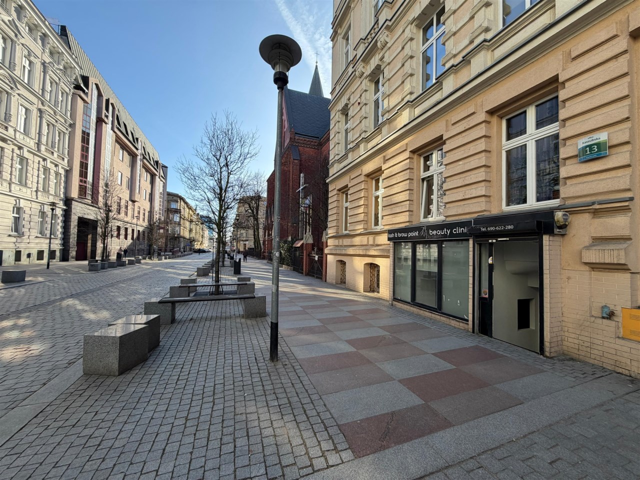 Lokal jest dobrze doświetlony dzięki dużym oknom, przez które wpada sporo naturalnego światła, co wpływa na komfort pracy oraz estetykę wnętrza. To idealna propozycja dla osób poszukujących miejsca na działalność usługową, biuro, gabinet lub punkt handlowy.
