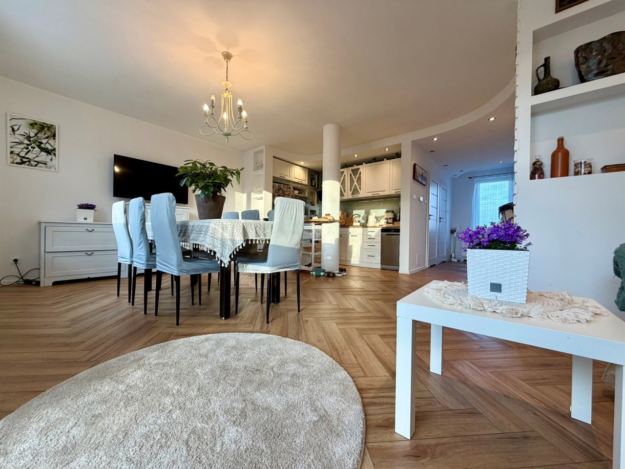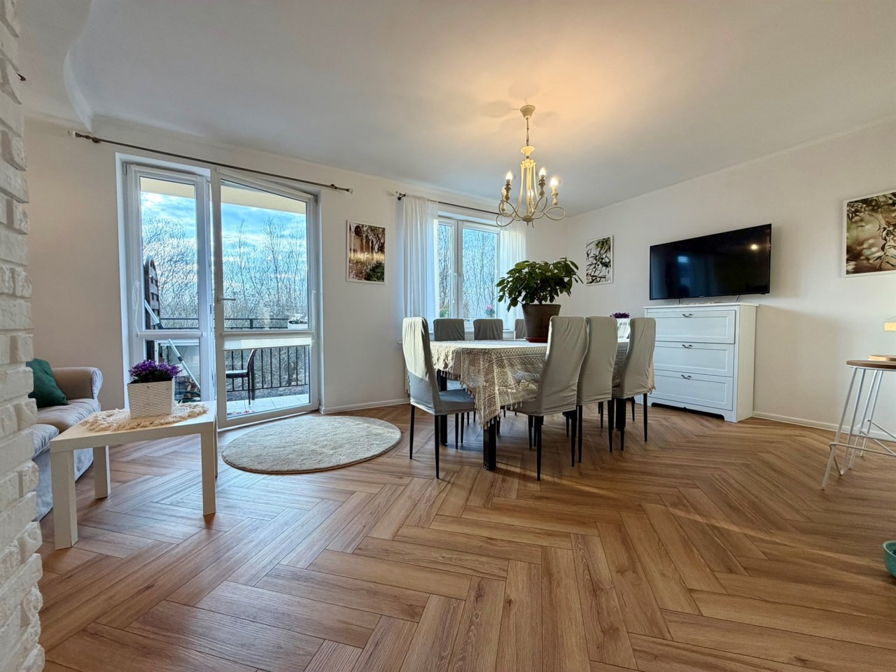 Nieruchomość o powierzchni 91 m² wyróżnia się przemyślanym układem pomieszczeń oraz dużą ilością naturalnego światła – mieszkanie jest dwustronne i rozkładowe.