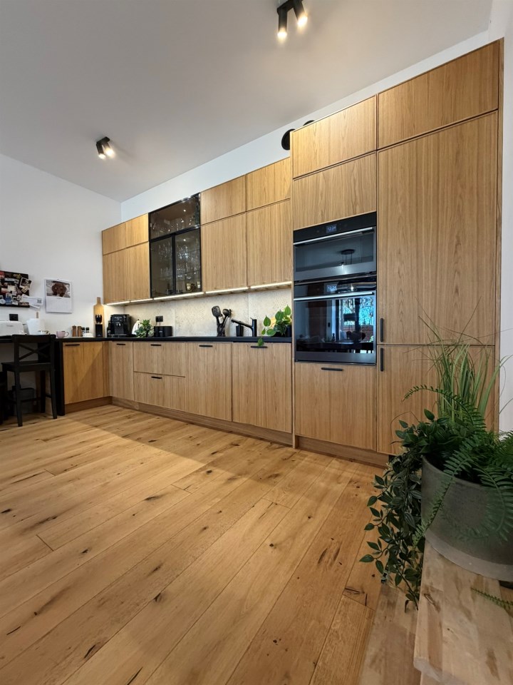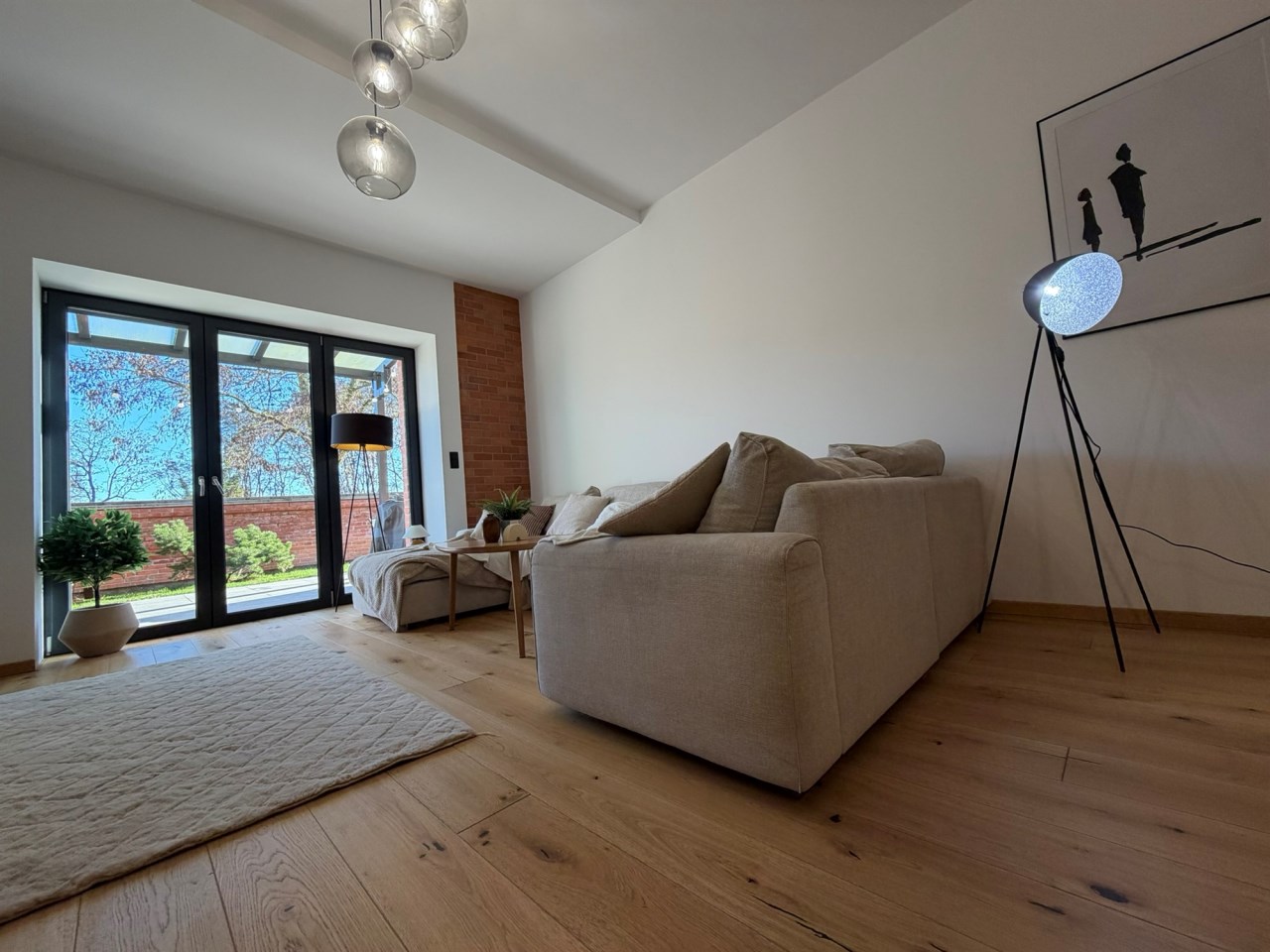 Wnętrze zaprojektowane zostało z dbałością o estetykę, funkcjonalność i trwałość. Zastosowano naturalne materiały, wysokiej klasy wyposażenie oraz ponadstandardową wysokość pomieszczeń – aż do 3 metrów, co tworzy wyjątkowy, loftowy klimat.