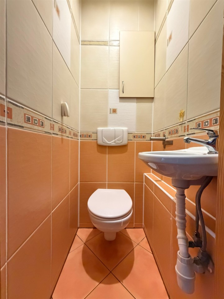 Kuchnia jest oddzielna, jasna, z oknem, wyposażona w zabudowę meblową. Łazienka oraz WC stanowią osobne pomieszczenia, co znacząco zwiększa wygodę mieszkańców.