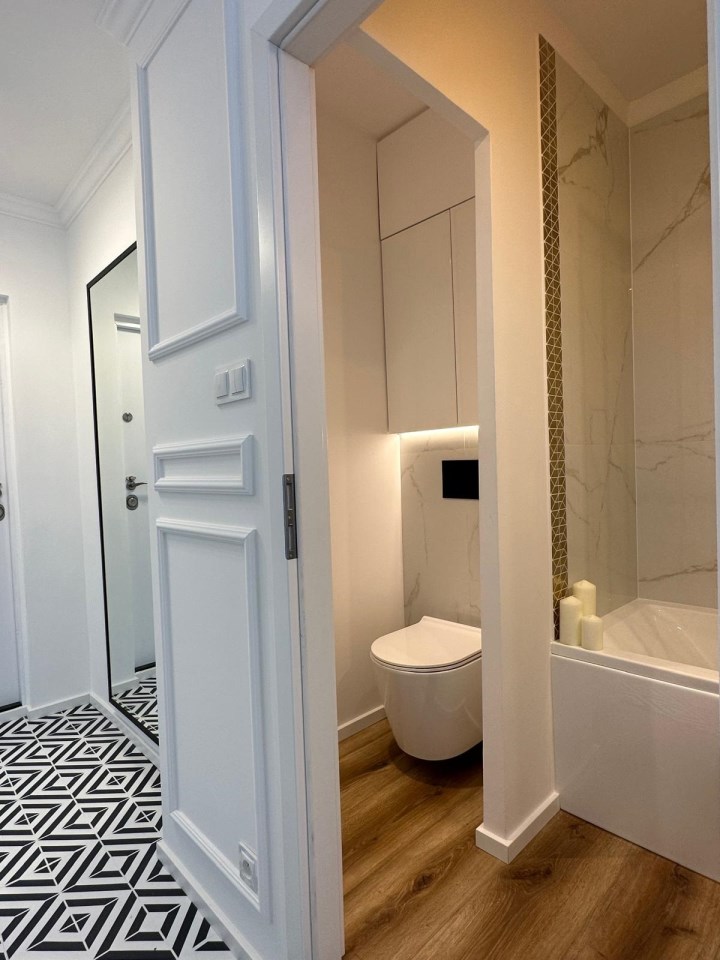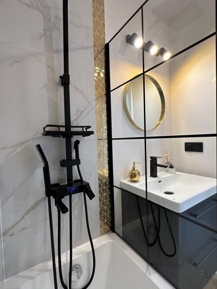 Łazienka po remoncie z nowoczesną armaturą,