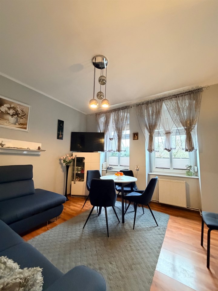 Mieszkanie składa się z dwóch ustawnych pokoi, jasnej kuchni, łazienki oraz przedpokoju. Położone na parterze, będzie idealną propozycją dla osób poszukujących wygodnego układu bez schodów – świetne również dla seniorów lub osób z ograniczoną mobilnością.