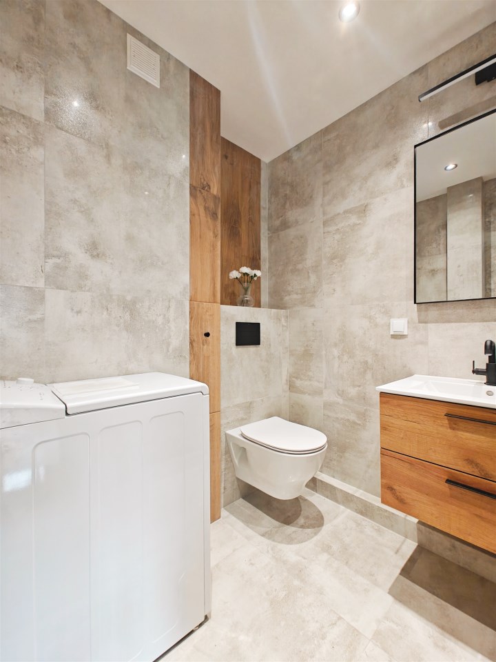 | Wyposażenie łazienki | lustro, pralka, umywalka, wanna, WC |