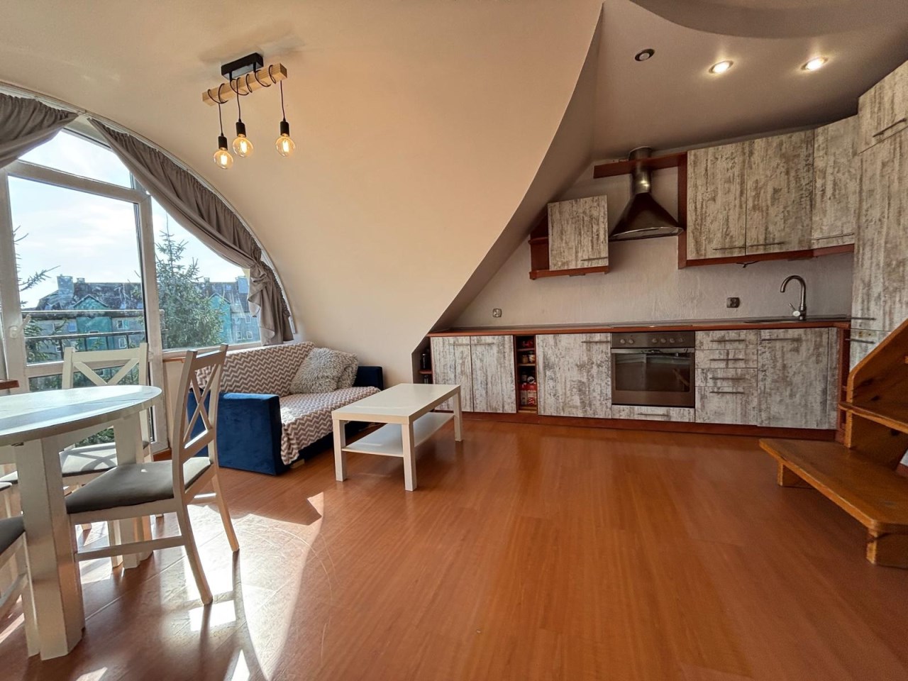 • Poziom I: przestronny salon z aneksem kuchennym, sypialnia, łazienka z WC