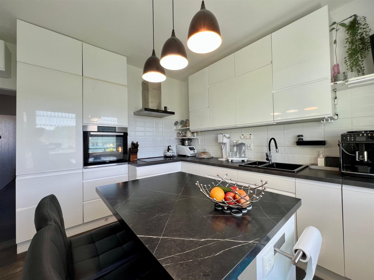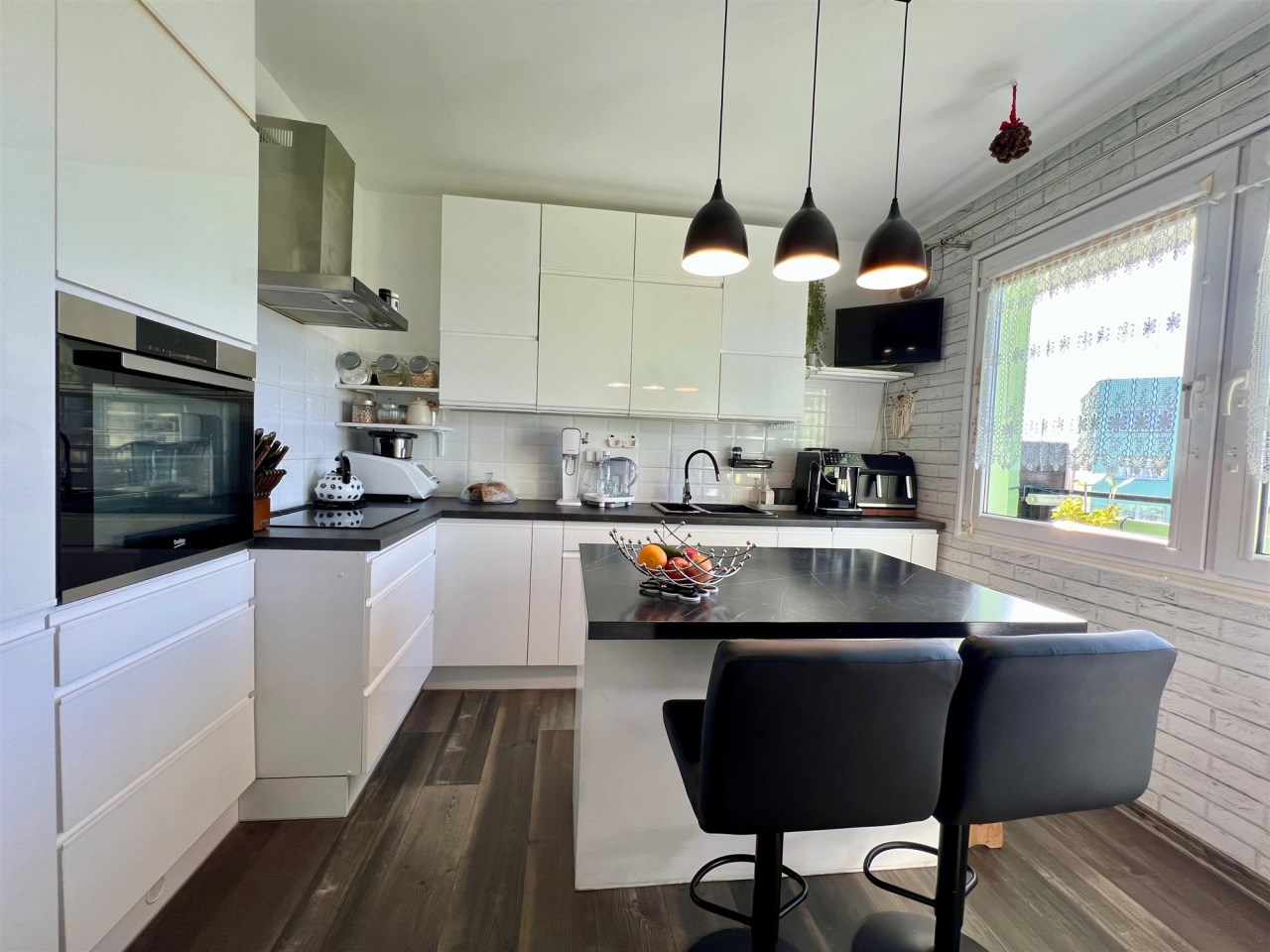 * oddzielnej, funkcjonalnej kuchni z wyspą