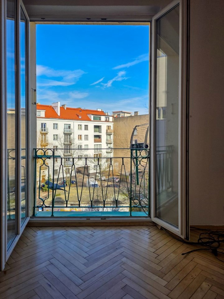 Mieszkanie jest jednostronne, położone od strony przestronnego podwórza z oknami wychodzącymi od strony północno-wschodniej.