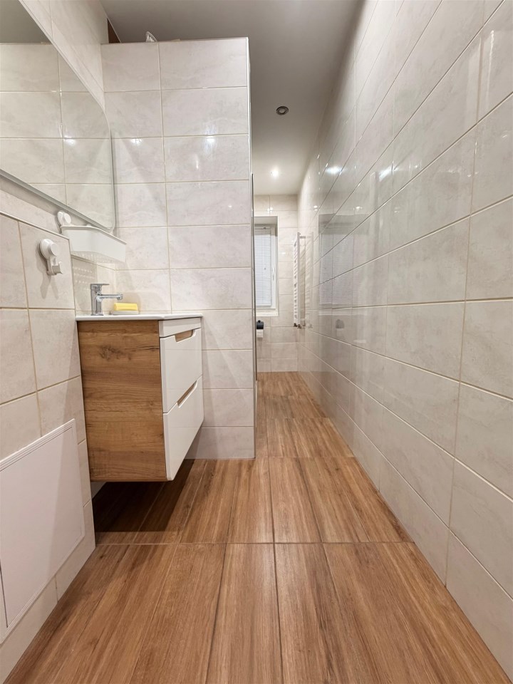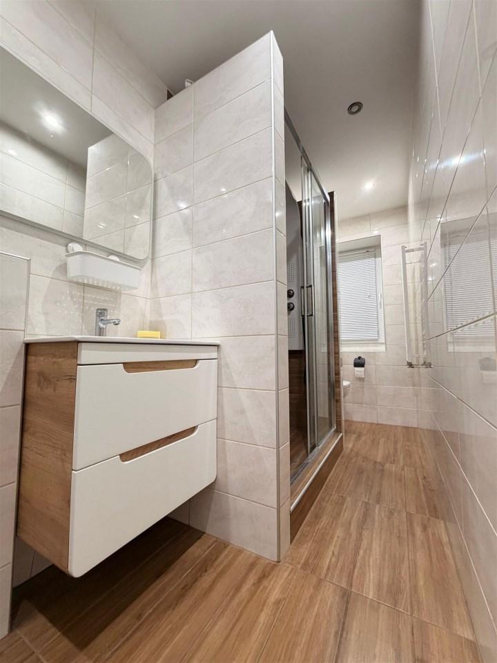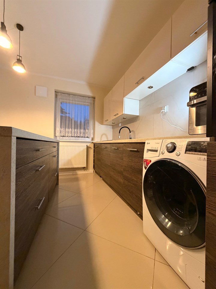Mieszkanie jest w bardzo dobrym stanie, remontowane zaledwie kilka lat temu. Na podłogach są kafle i deska barlinecka, okna PCV, ściany gładzone malowane. W mieszkaniu jest zainstalowana rekuperacja ścienna, co gwarantuje zawsze świeże powietrze w mieszkaniu.
