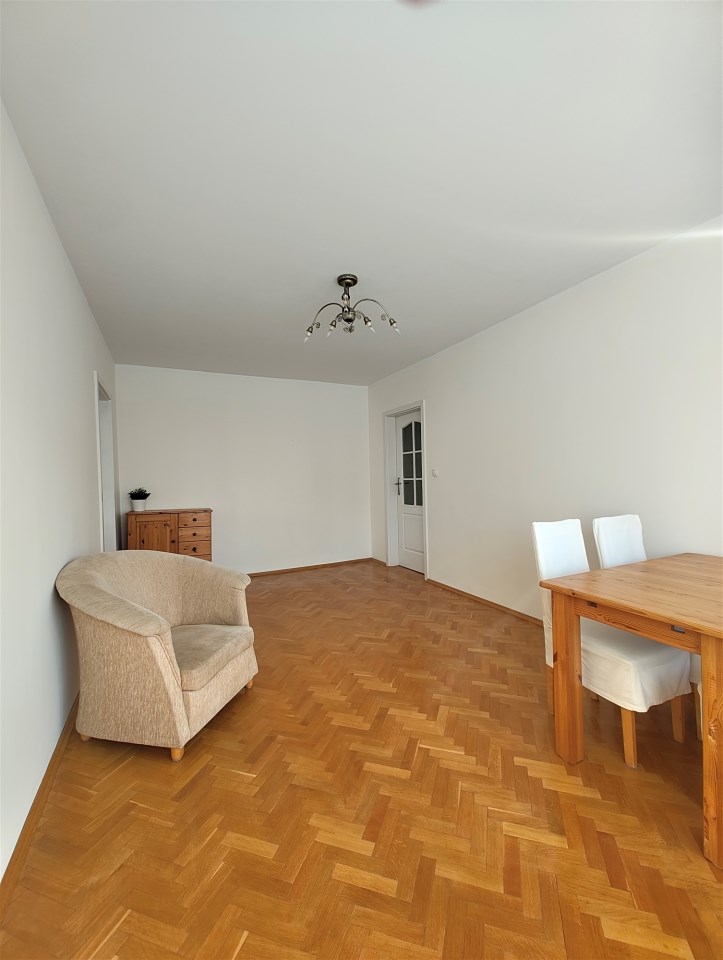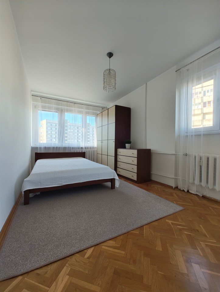Przestronne pokoje o powierzchni ok. 18 m², 16 m² oraz 12 m² są ustawne i słoneczne. W całym mieszkaniu znajduje się elegancki dębowy parkiet. Instalacja elektryczna została wymieniona na miedzianą. W sypialni zamontowane rolety zaciemniające.