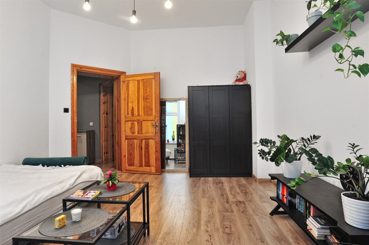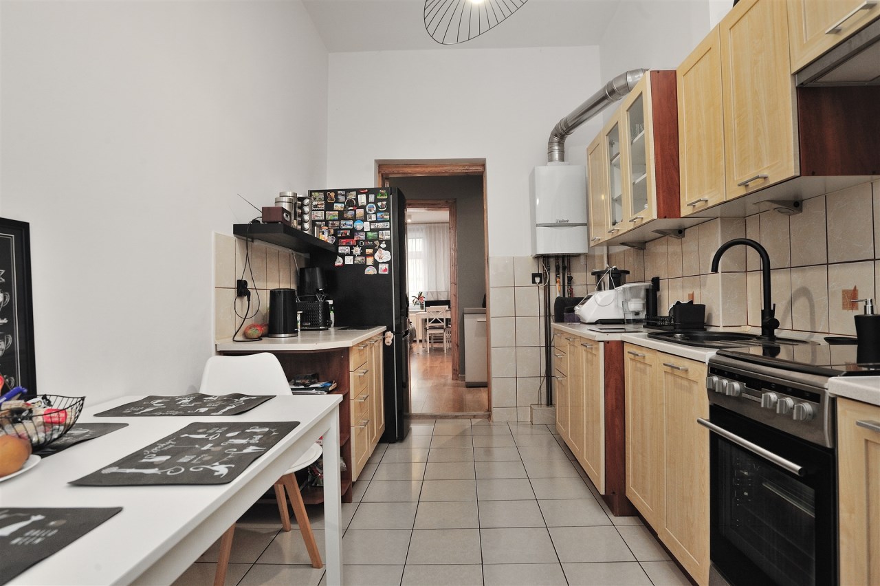 To przestronne mieszkanie o powierzchni 95,58 m² znajduje się w zabytkowej kamienicy z około 1920 roku.