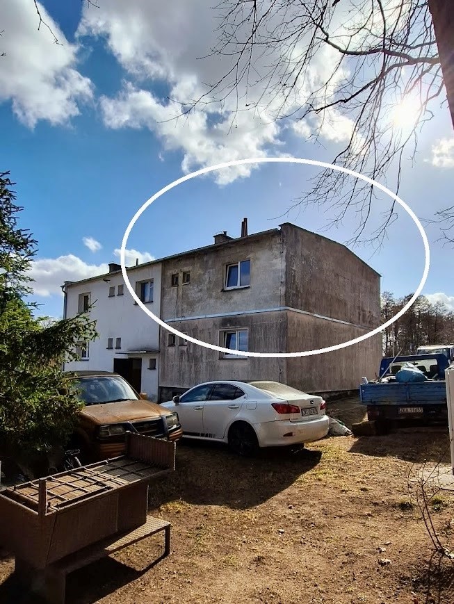 Lokal składa się z: 2 pokoi, kuchni, łazienki, spiżarni, przedpokoju. Łączna powierzchnia mieszkania wynosi około 53 m². Dodatkowo do nieruchomości przysługuje udział w działce. Mieszkanie wymaga generalnego remontu, co daje możliwość aranżacji według własnych potrzeb. Lokalizacja: