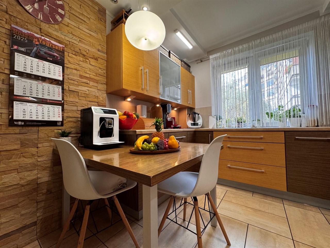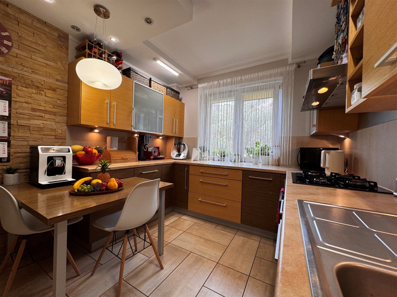 bardzo duża, widna kuchnia z dużym oknem,