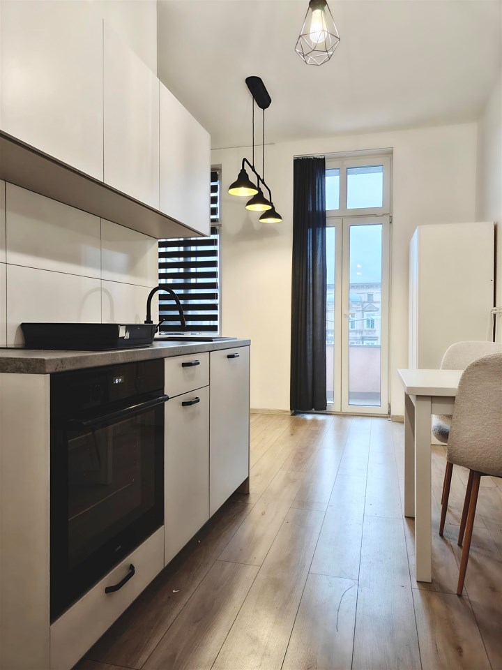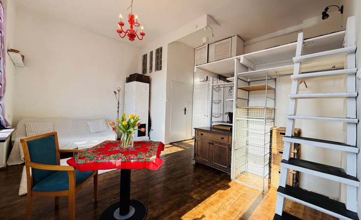 Mieszkanie jest w pełni umeblowane i wyposażone, dzięki czemu jest gotowe do zamieszkania od zaraz. Lokal idealnie sprawdzi się dla jednej osoby lub pary.