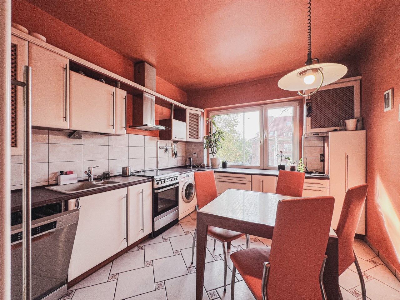 Mieszkanie znajduje się na pierwszym piętrze, a jego okna wychodzą zarówno na ulicę, jak i na podwórko za budynkiem. Mieszkanie przestronne i niezwykle ciepłe.