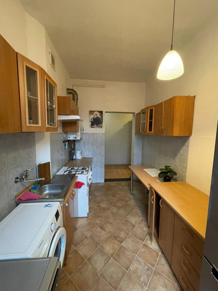 Duża oddzielna kuchnia z oknem. Ogrzewanie mieszkania i wody realizowane dwuobiegowym piecem gazowym.
