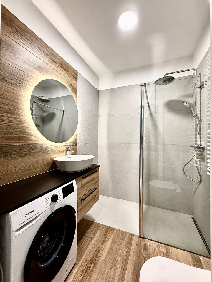 | Wyposażenie łazienki | lustro, kabina prysznicowa, WC, pralka |